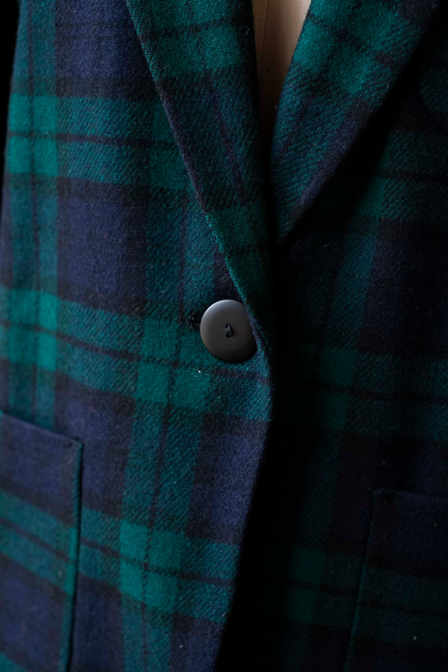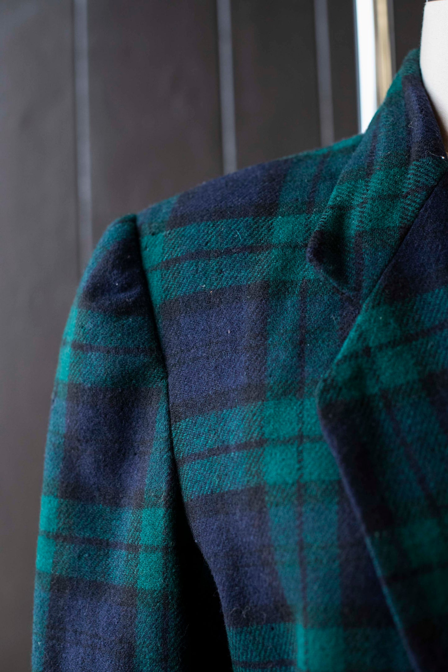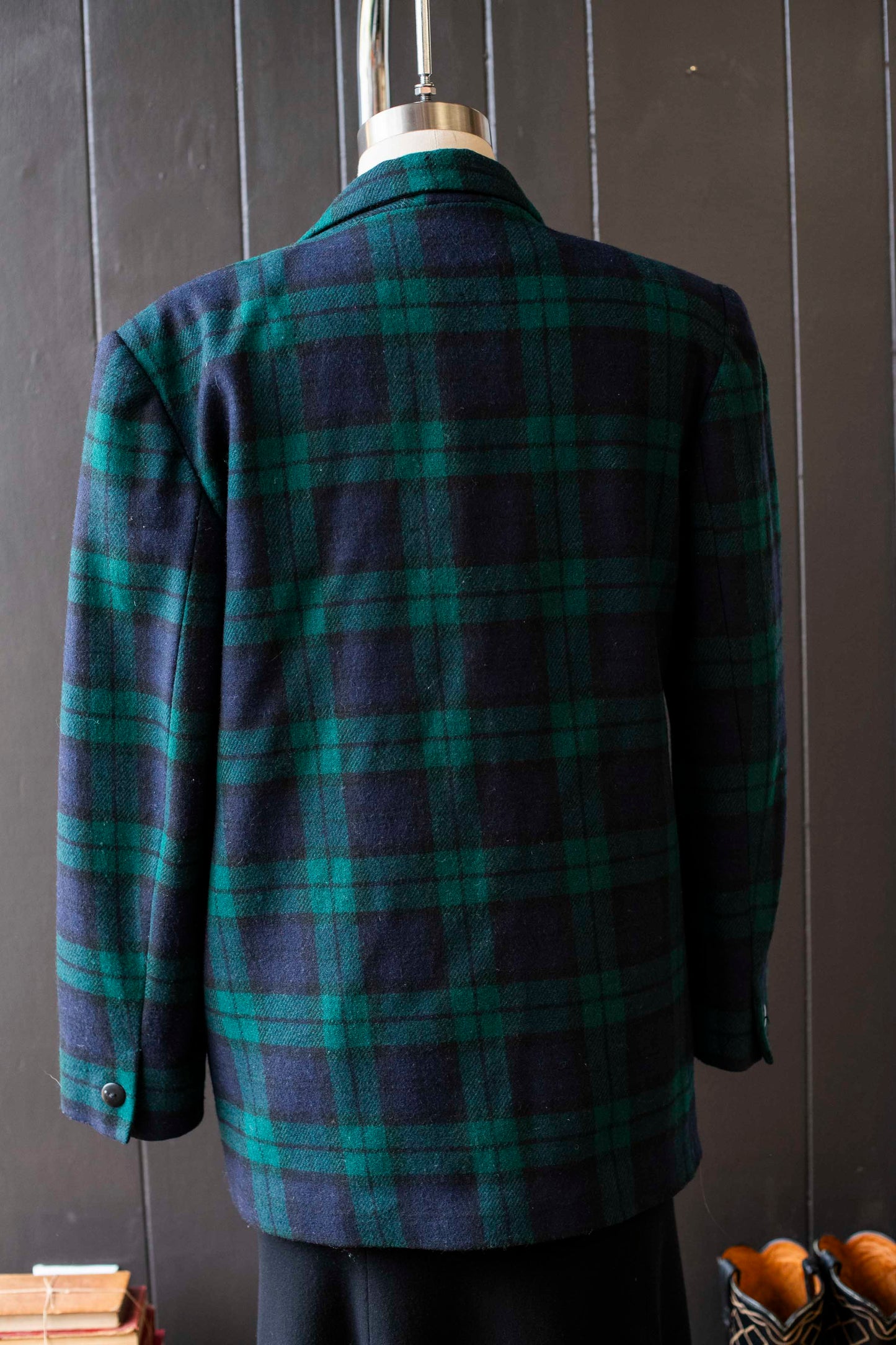 Vintage Navy & Green Tartan Plaid Blazer - Size M