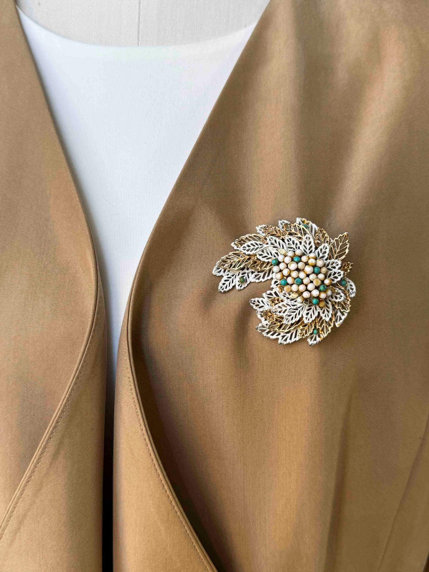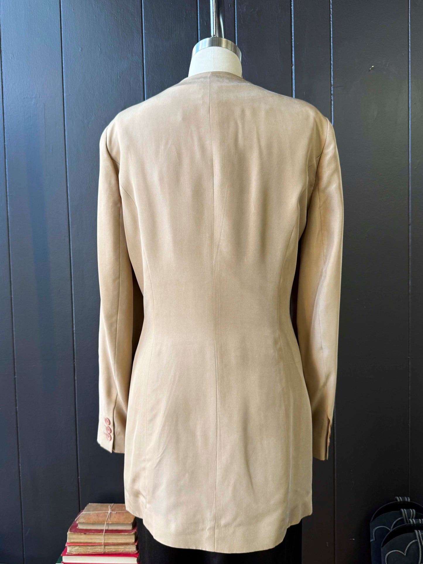 Vintage En Avance Silk Tan Silk Blazer with Pin - Size L
