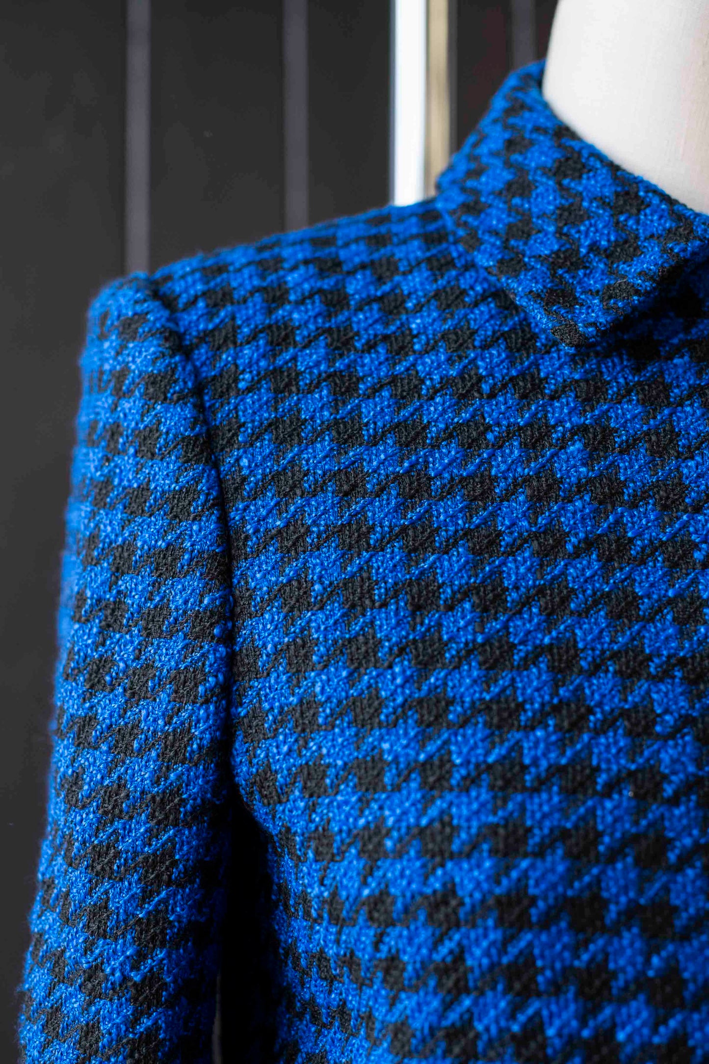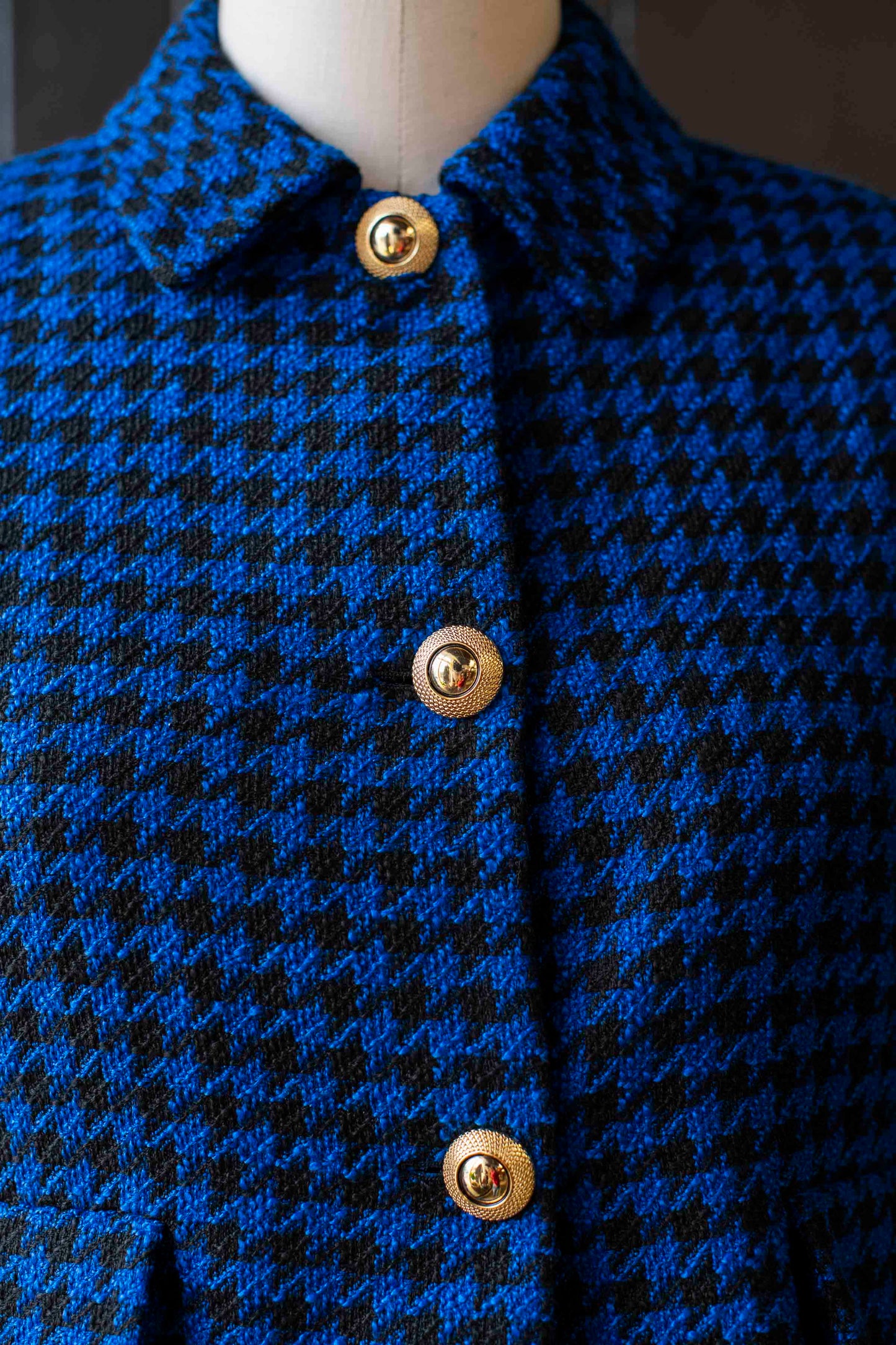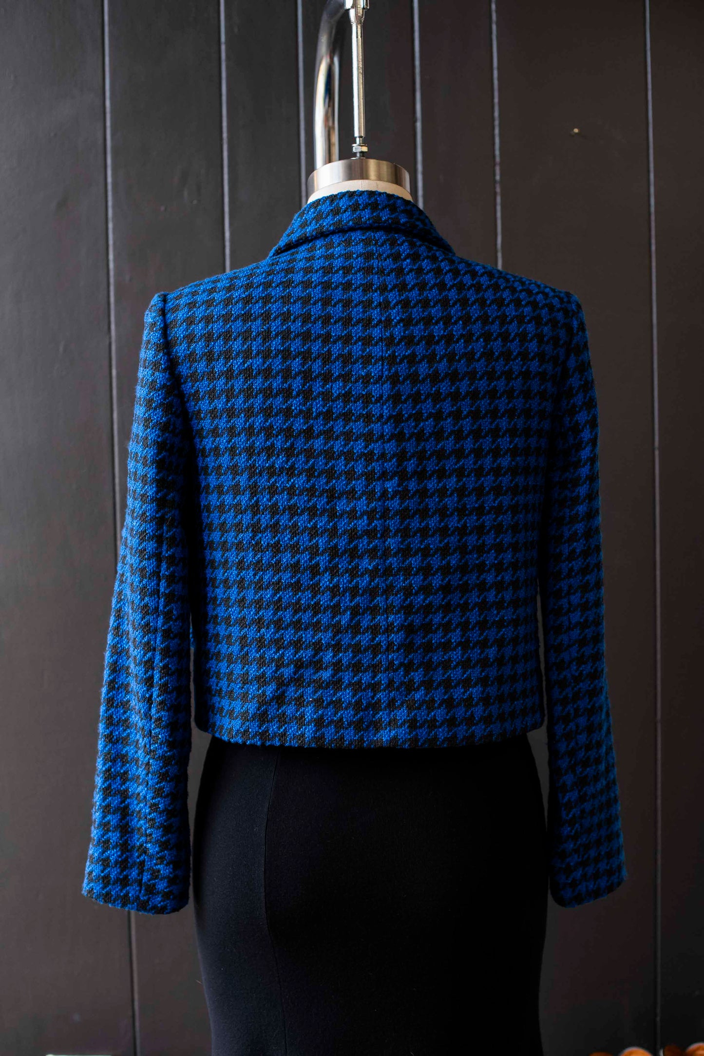 Pre-loved Blue & Black Houndstooth Crop Blazer - Size M