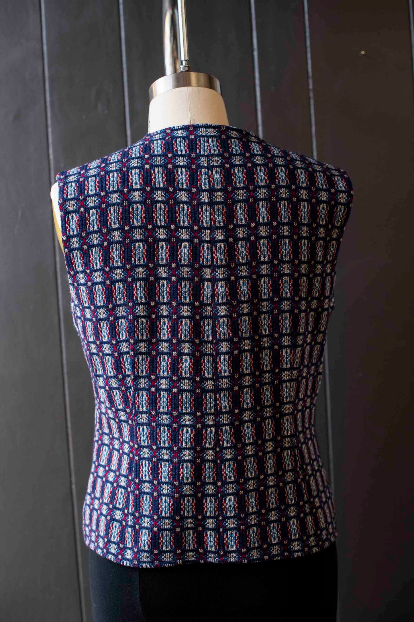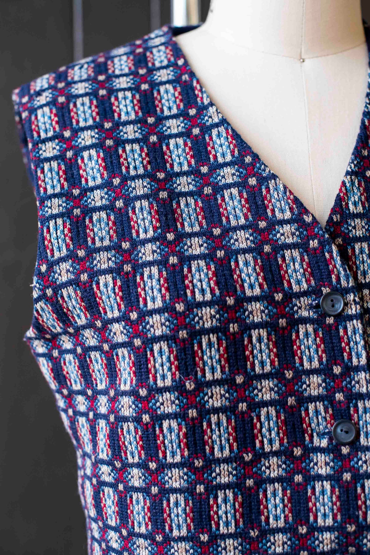 Vintage Navy Blue & Red Handmade Knit Vest - Size S