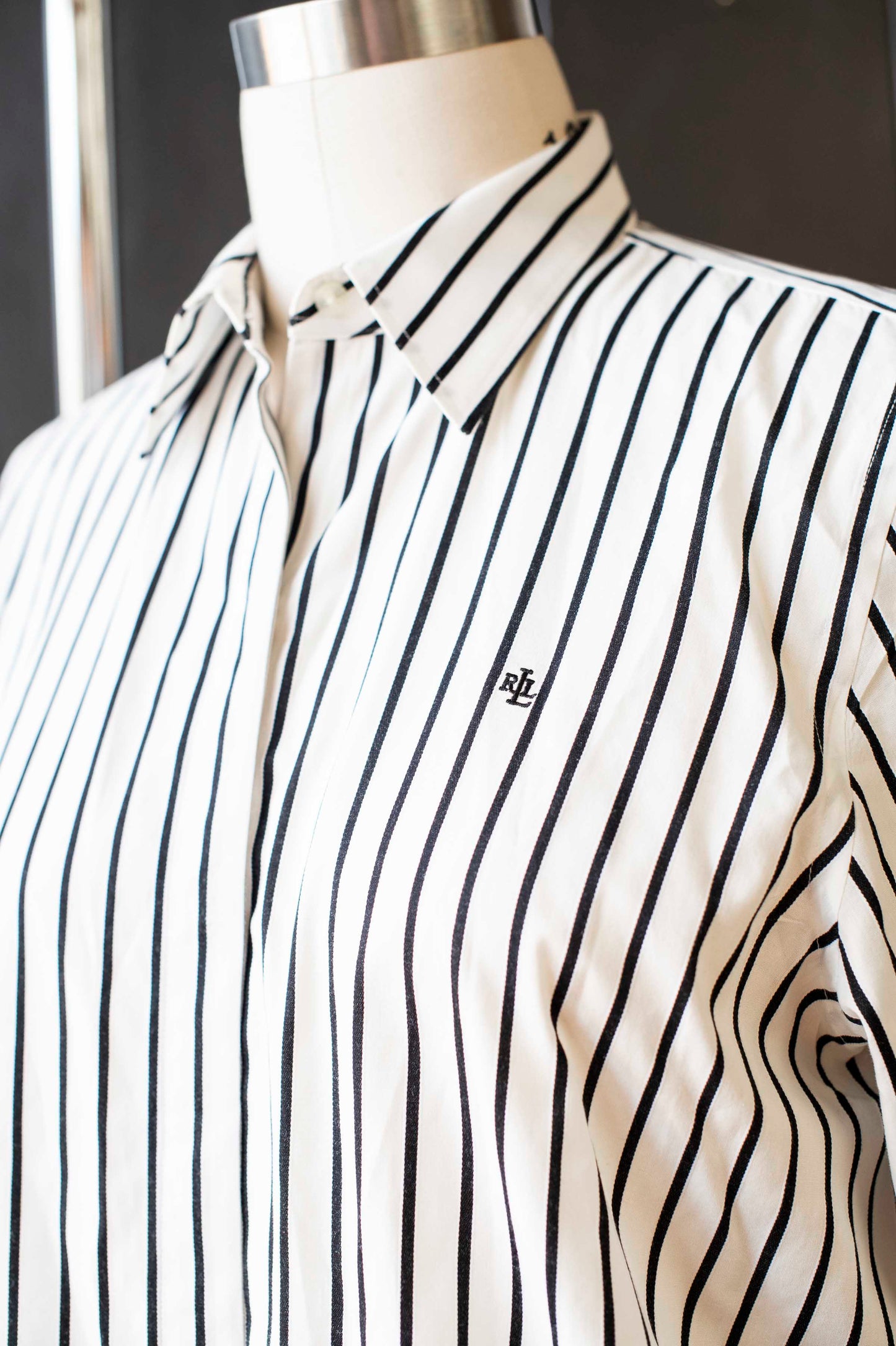 Pre-loved White Lauren Ralph Lauren Black Striped Shirt- Size L