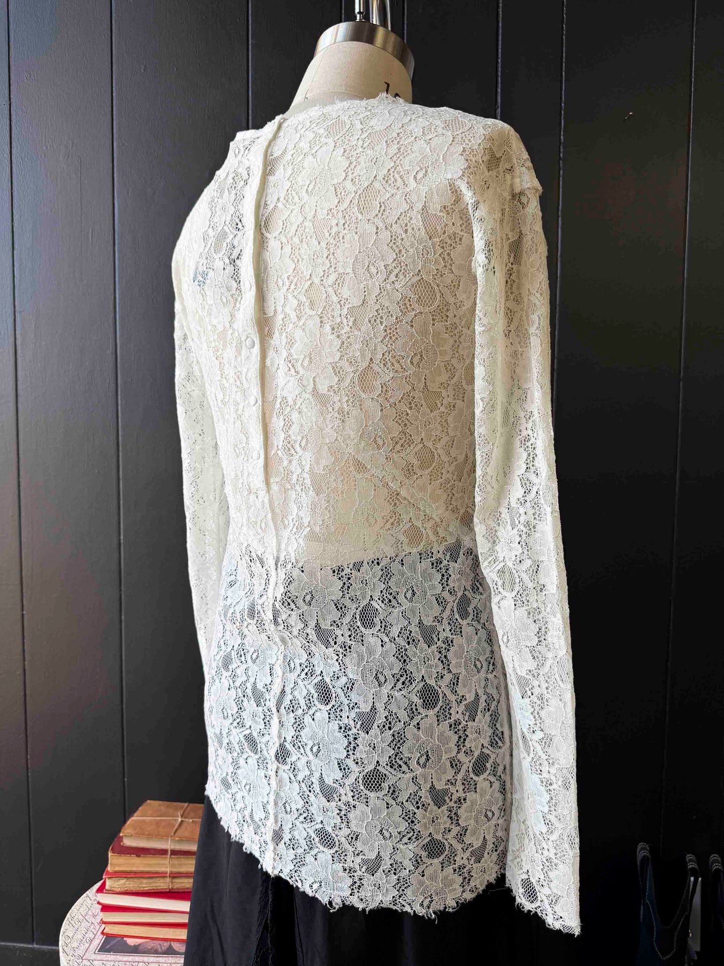 Pre-loved Sandro Paris White Lace Snap Back Blouse - Size M
